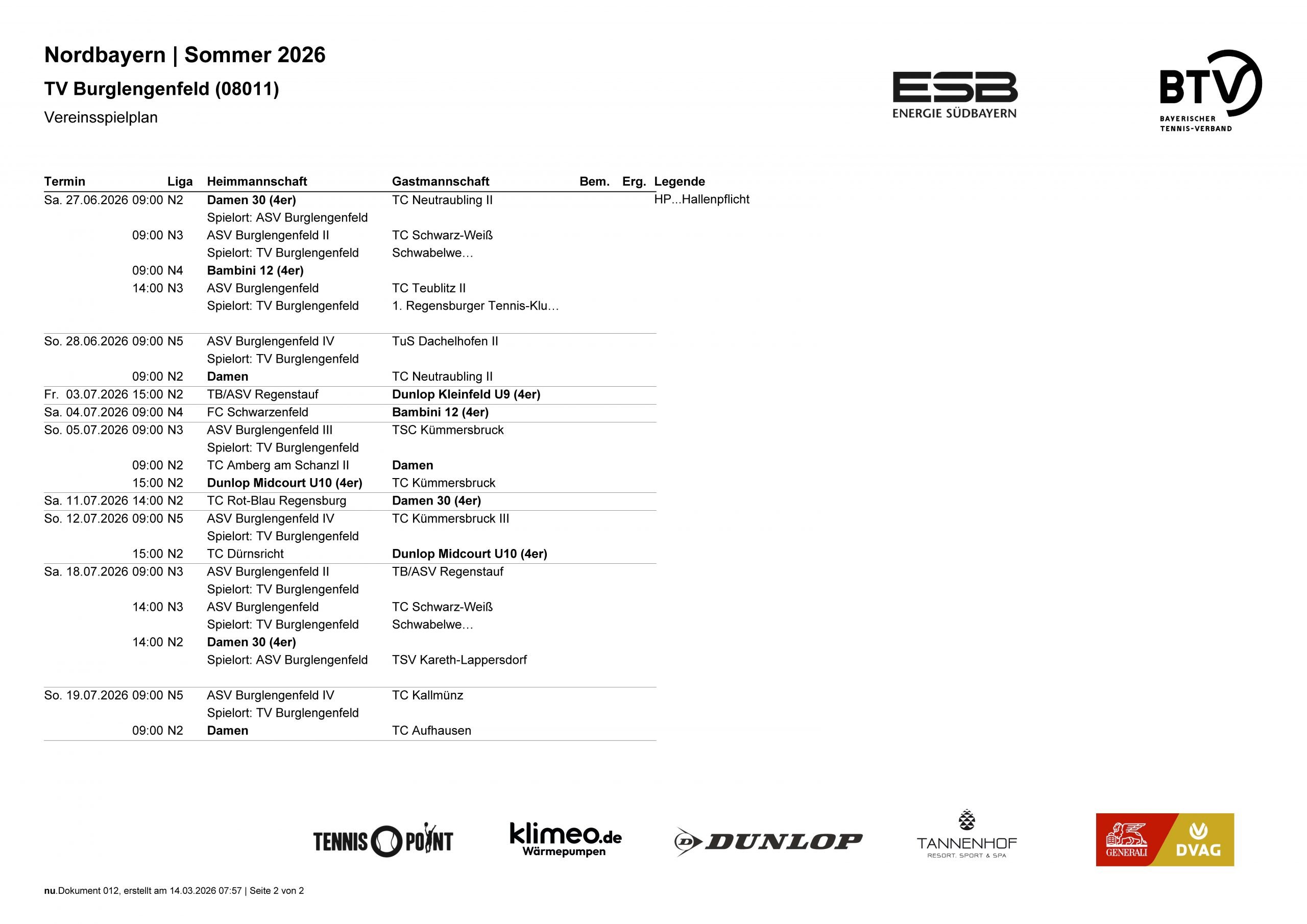 TV Vereinsspielplan Sommer 2026