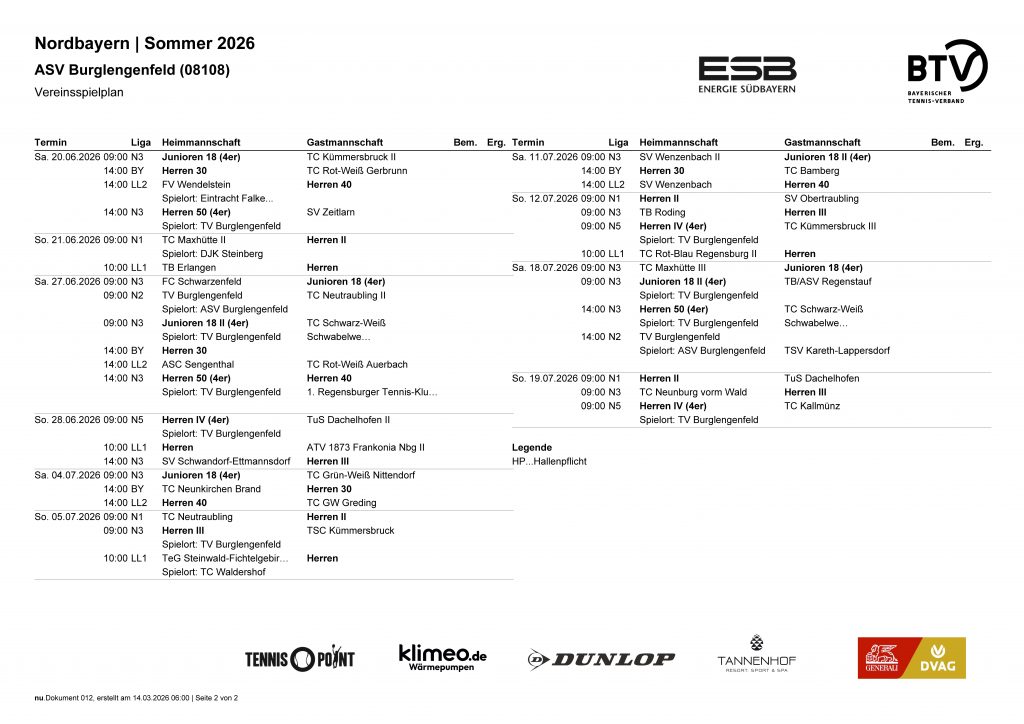TV Vereinsspielplan Sommer 2026